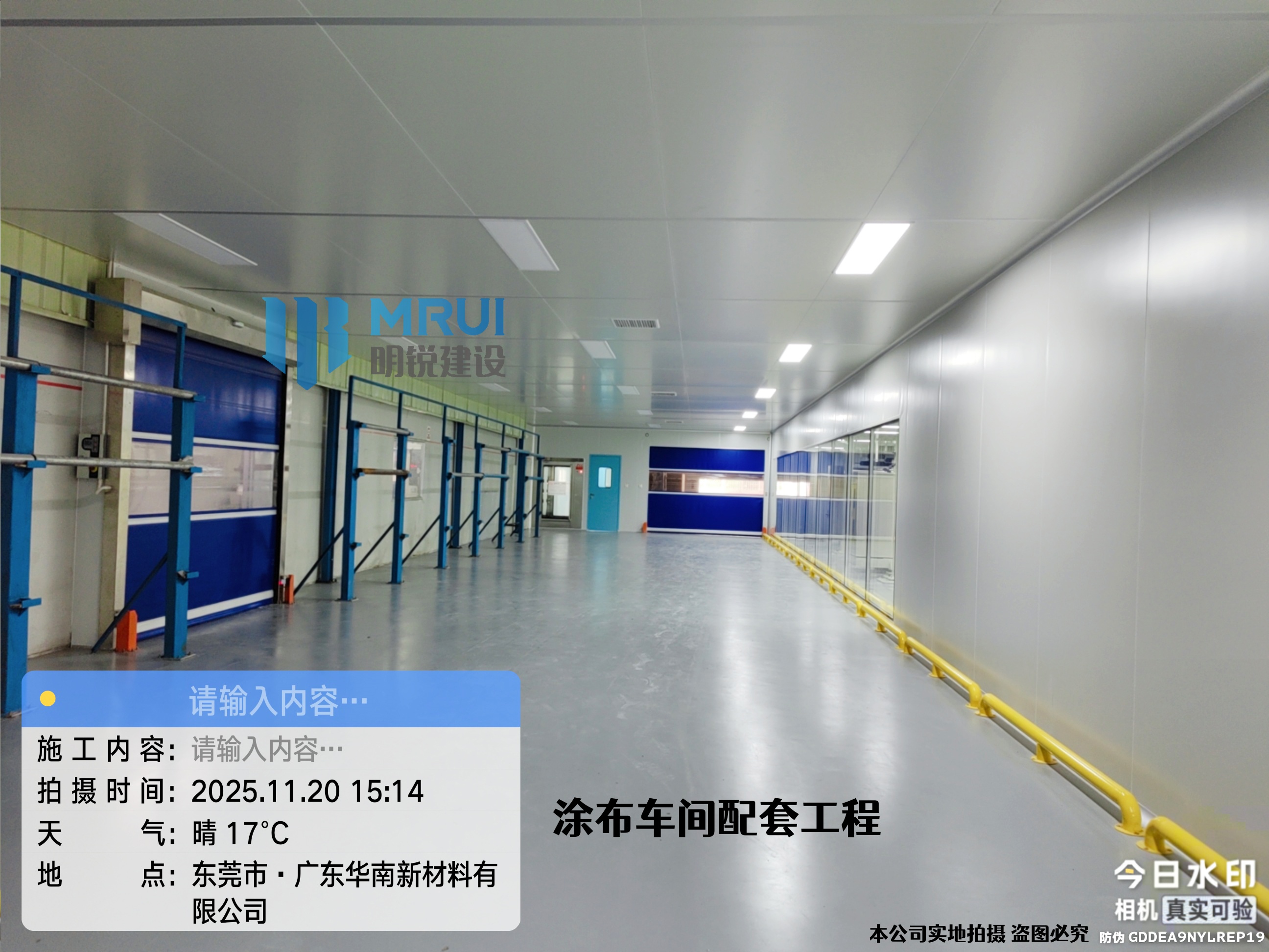 近日,我司顺利完成广东华南新材料有限公司1000㎡涂布车间装修配套工程的竣工交付。 华南新材深耕薄膜胶带研发生产领域,此次工程专为其涂布生产需求打造。施工期间,我司与华南新材保持密切对接,实时响应甲方需求、动态调整施工方案,精准紧扣涂布工艺对洁净度、温湿度、防静电等核心要求,科学划分车间功能分区,选用适配工业生产的优质材料,同时严格遵循厂房装修规范,全程把控施工质量与进度。 目前,工程各项指标经验收符合生产标准,新车间投用后,将为华南新材扩大产能、提升产品品质提供坚实硬件支撑。