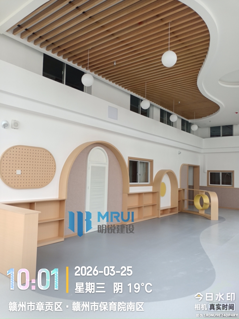 | 近日,由我司承建的赣州市保育院(南区)南教学楼室内改造项目顺利完工。项目改造面积达4450平方米,涵盖教室、活动区及公共走廊等核心空间。 施工过程中,我司始终秉持安全第一、环保优先的原则,严格选用绿色环保材料,精细化把控每一道工序,确保改造后的空间既安全舒适,又童趣温馨,为孩子们营造了一个健康、明亮的成长环境。 我司将持续以匠心品质回馈客户信任,在公共建筑装修领域不断深耕,用实际行动诠释责任与担当。